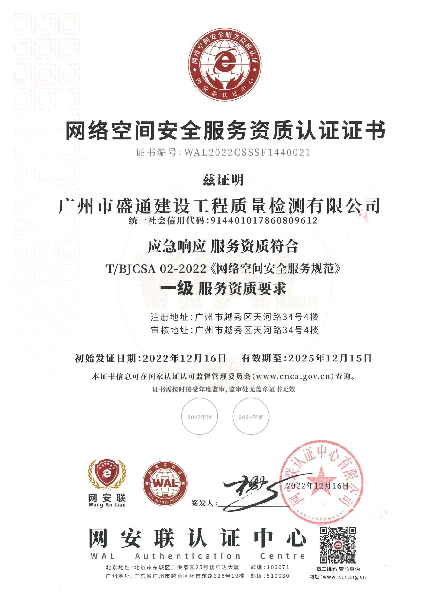 • 中國通信企業協會通信網絡安全服務能力評定證書